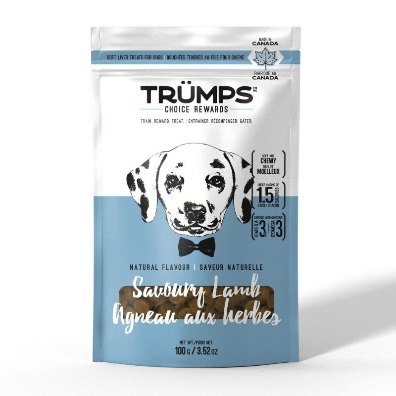 Trumps Choice Rewards™ - A Low Calorie, Heart Smart Treat. Authentic taste, and great nutrition, this flavour wins your dog's taste buds and heart. Enjoy the eager response from your dog each time you hand out a Natural Savoury Lamb reward. Under 1.5 calories each!